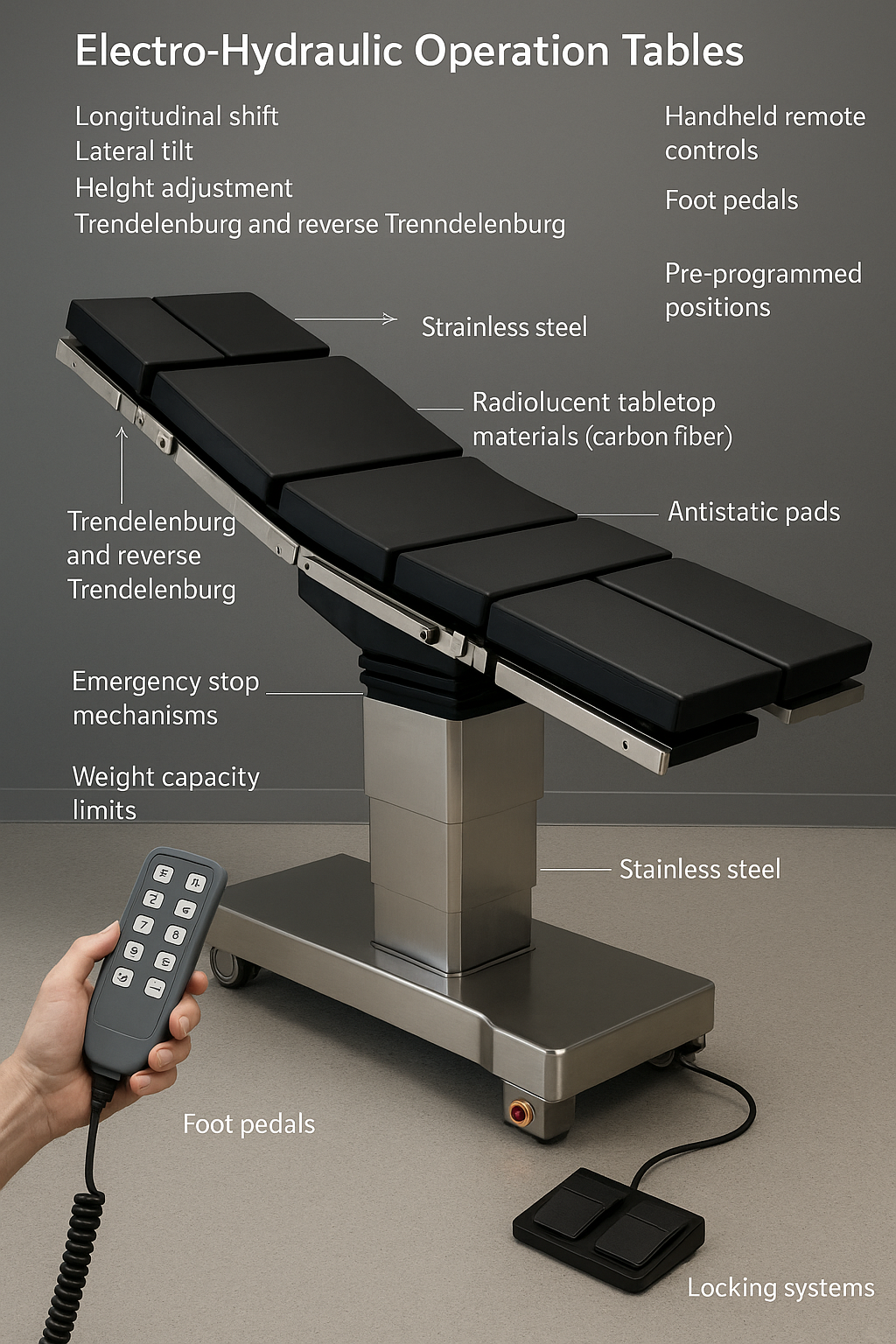 Ang mga tampok na ito ay naglalarawan kung paano sinusuportahan ng mga electro-hydraulic system ang maramihang mga kinakailangan sa operasyon habang pinapanatili ang katatagan ng pasyente.