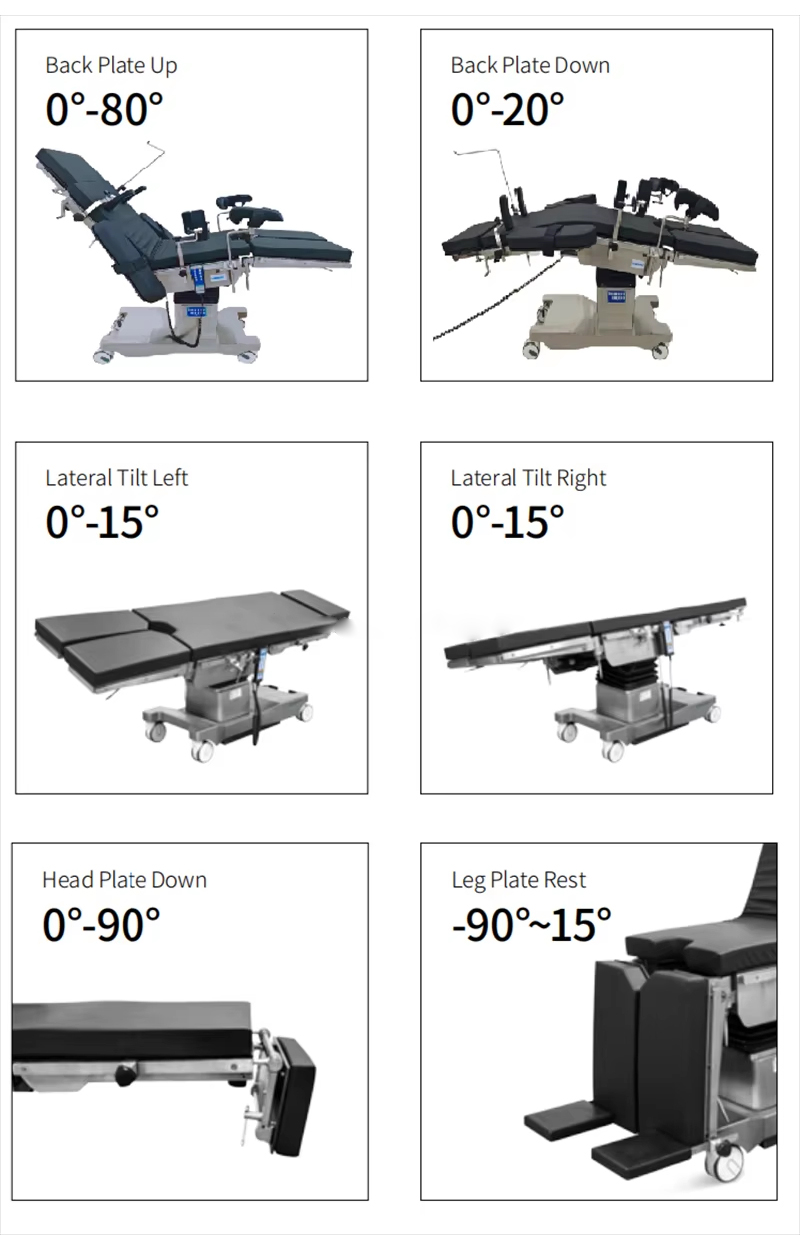 Ang pag-angat at pagbaba ng workbench, pagkiling sa harap at likod, kaliwa at kanang pagkiling, pataas at pababang pagtitiklop ng backboard, at pagsasalin ay kontrolado lahat ng mga electric push rod.