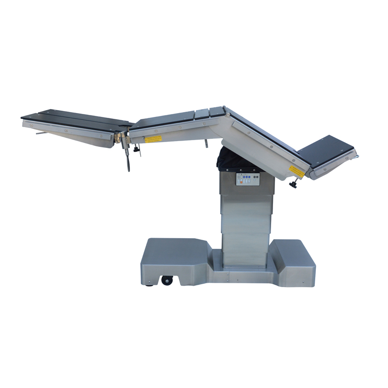 Ang produktong ito ay angkop para sa pagsasagawa ng mga operasyon sa ulo, leeg, dibdib, lukab ng tiyan, perineum, at paa sa mga operating room ng ospital, gayundin sa obstetrics at gynecology, ophthalmology, otolaryngology, orthopedics, at iba pang operasyon. Ang pag-angat, pasulong at paatras na pagkiling, kaliwa at kanang pagkiling, pagtitiklop ng backboard, at paayon na paggalaw ng tabletop ay nakakamit ng isang electric hydraulic system, na nababaluktot at simpleng patakbuhin. Ang table panel ay gawa sa high-strength synthetic board at maaaring gamitin kasabay ng mga hugis-C na arm.